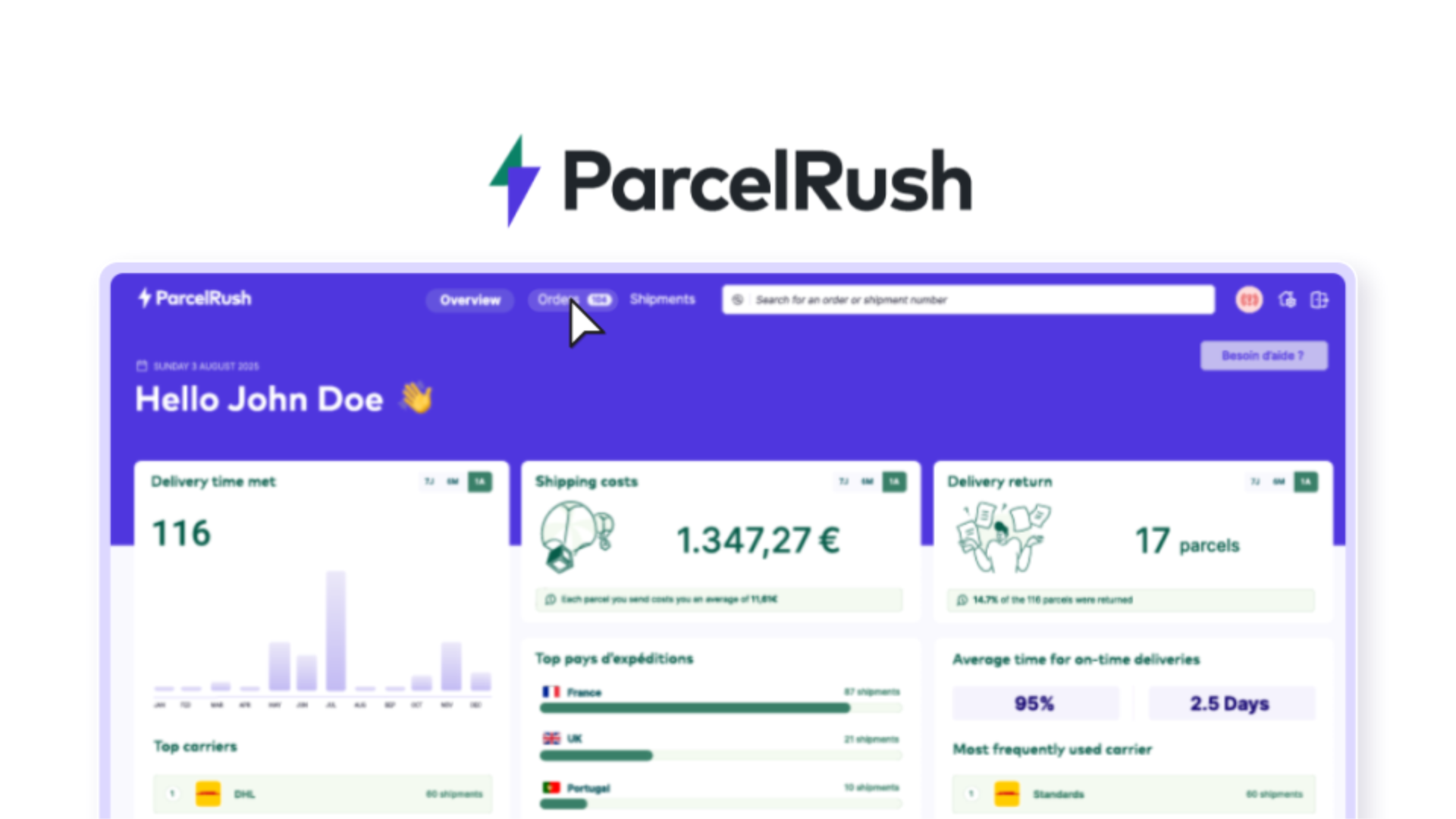Parcel Rush is a new platform entering the European market in late 2025, built to simplify e-commerce shipping. The platform allows online sellers to manage every stage of their logistics: comparing rates, automating repetitive tasks, and tracking parcels with ease. In a competitive landscape where many solutions appear complex or overloaded, Parcel Rush positions itself differently by emphasizing clarity, efficiency, and user-friendly design. The goal is to communicate these values through both the product experience and its visual identity.